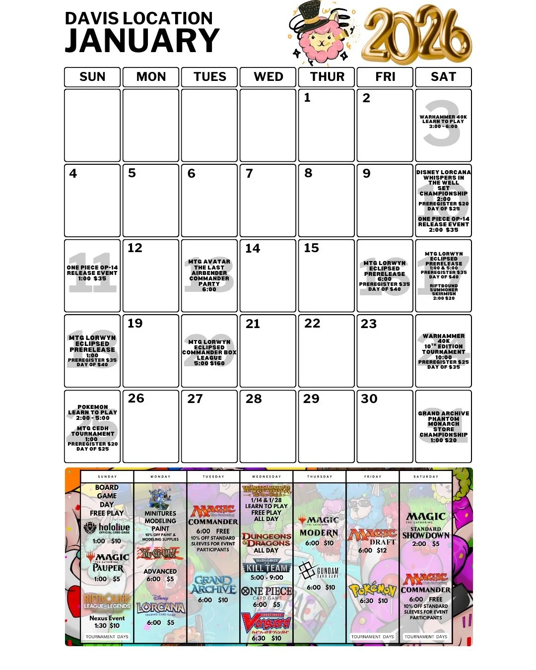 As a local tabletop gaming center, we host regular gaming events and tournaments for both new and experienced players. We encourage customers to visit our events page to learn about upcoming tournaments and other RPG store events.