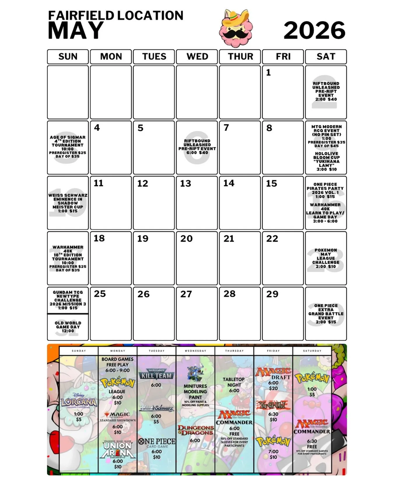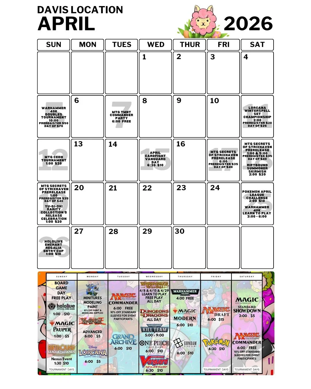 Demos for our table top games. Schedule your appointment today via Discord, Facebook, or stopping by the store.