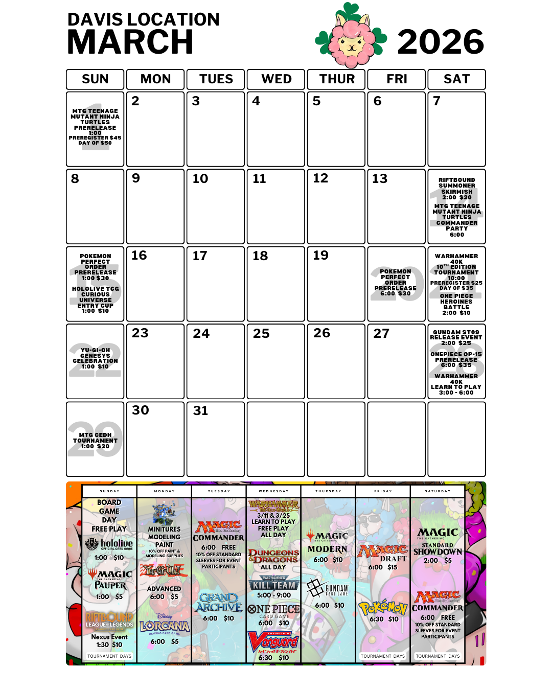 Welcome to Mad Alpaca Games Davis. We are an inclusive community for everyone wanting to have fun. We specialize in Magic the Gathering, Warhammer, D&D, & more.