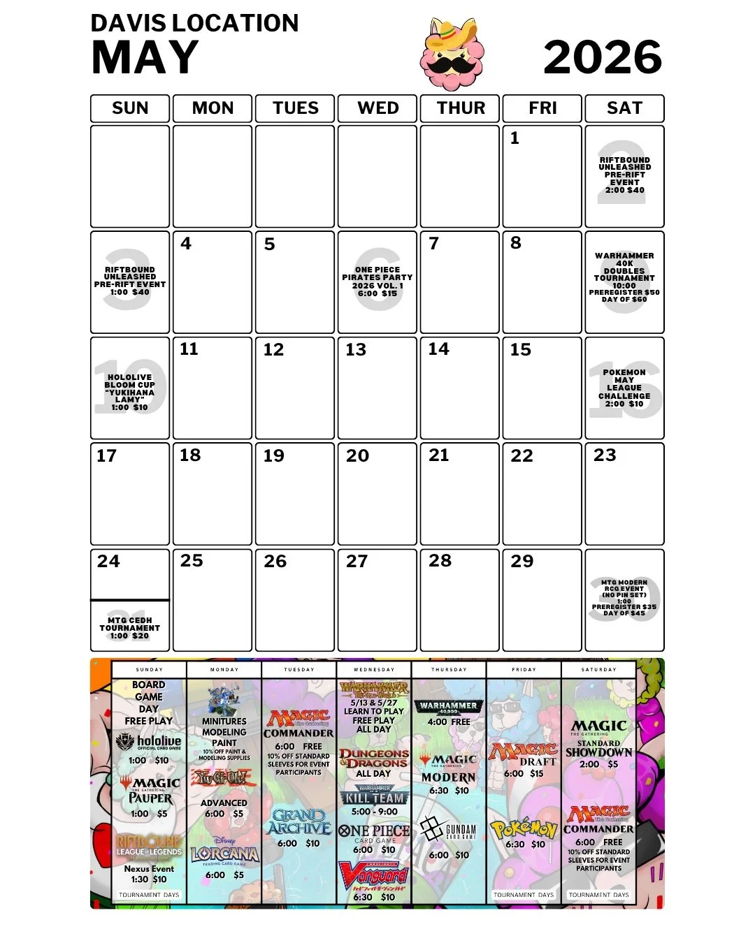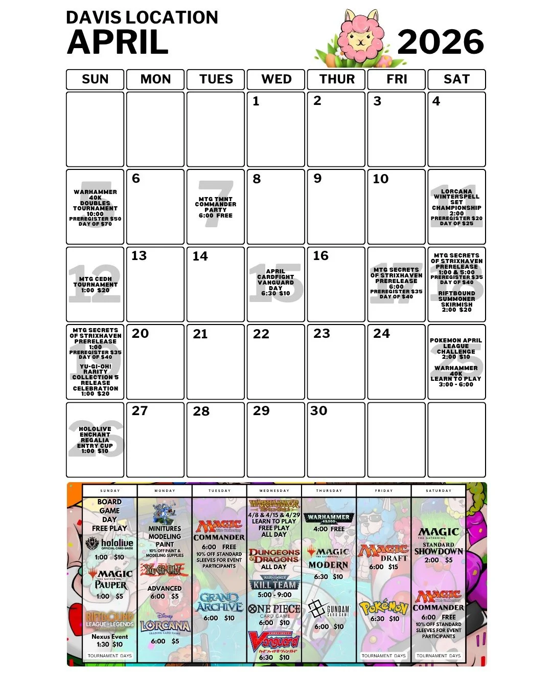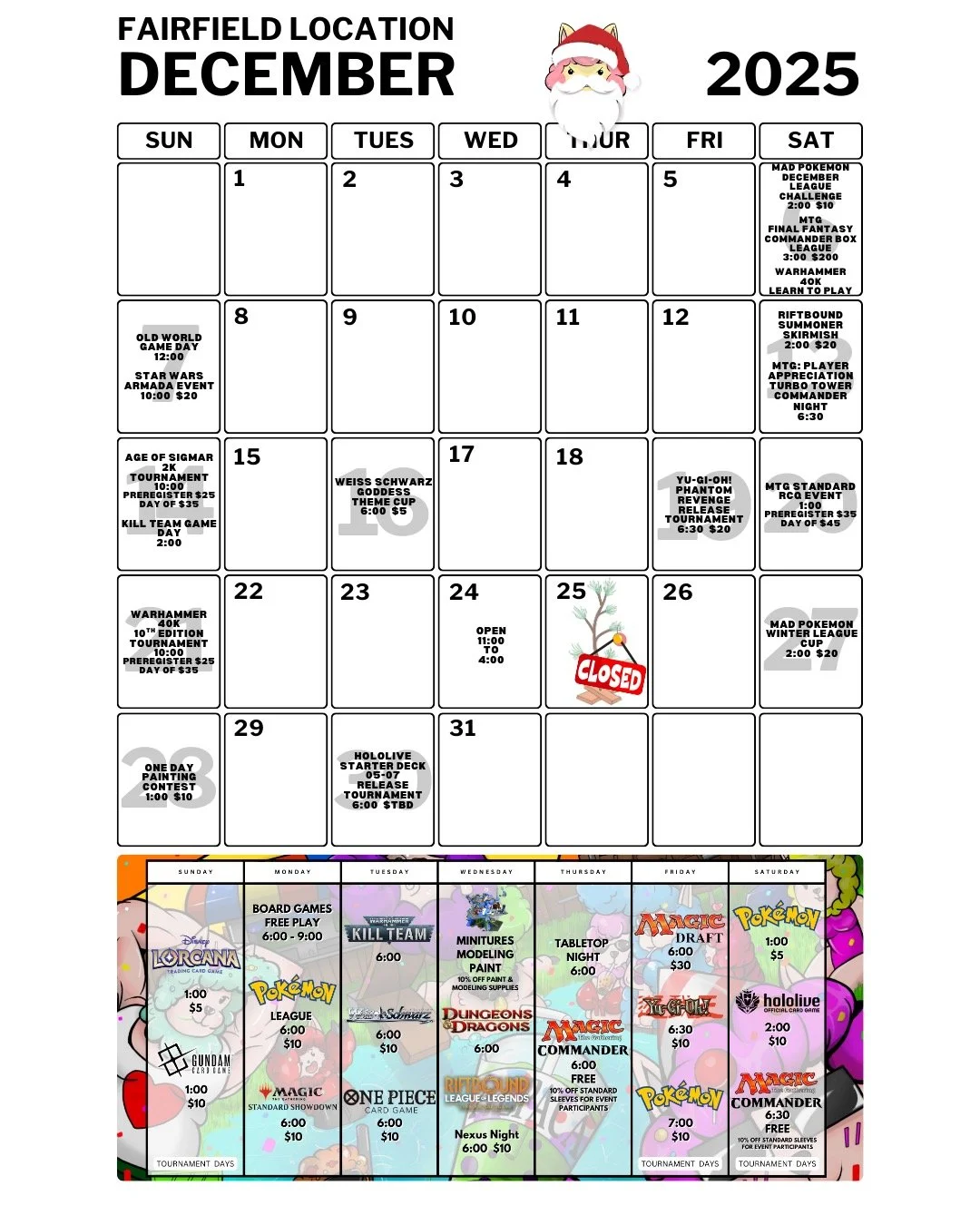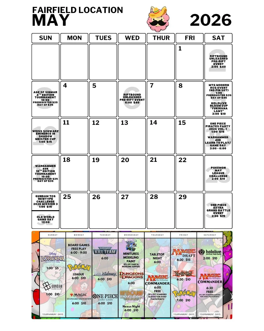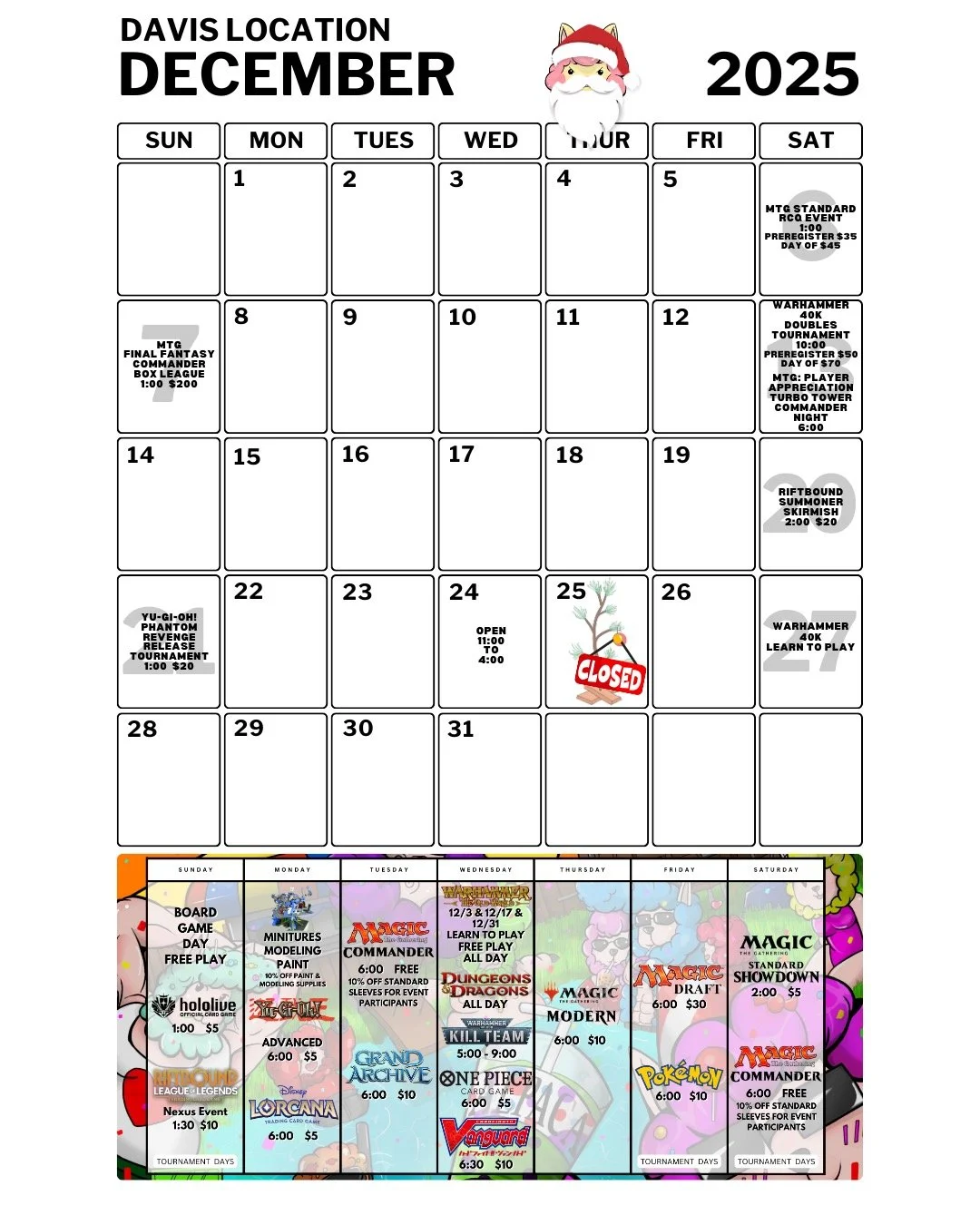 Demos for our table top games. Schedule your appointment today via Discord, Facebook, or stopping by the store.